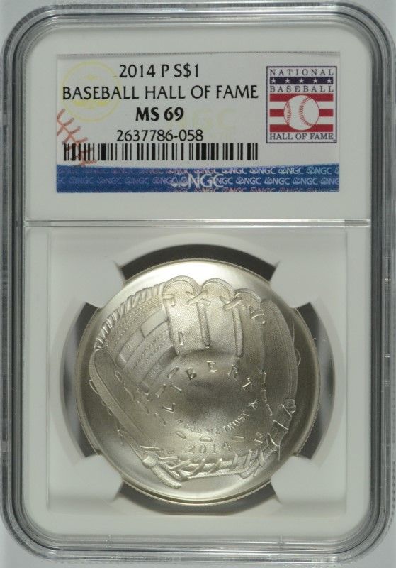 2014 BASEBALL HALL OF FAME SILVER DOLLAR, NGC MS-69! WOW!!