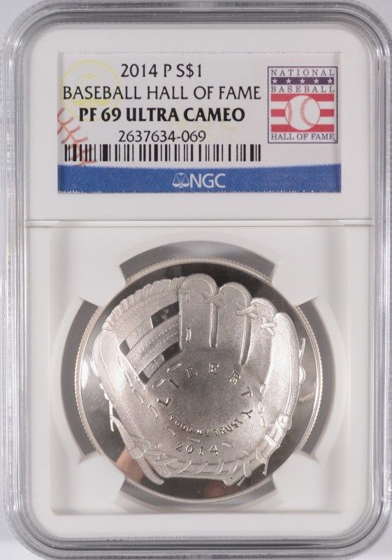 2014 BASEBALL HALL OF FAME SILVER DOLLAR, NGC PROOF-69 ULTRA CAMEO BEAUTIFUL!