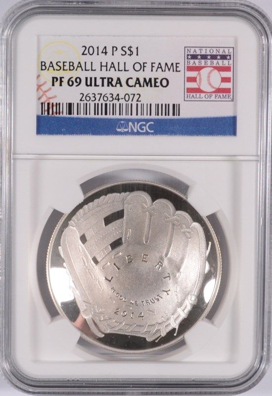 2014 BASEBALL HALL OF FAME SILVER DOLLAR, NGC PROOF-69 ULTRA CAMEO BEAUTIFUL!