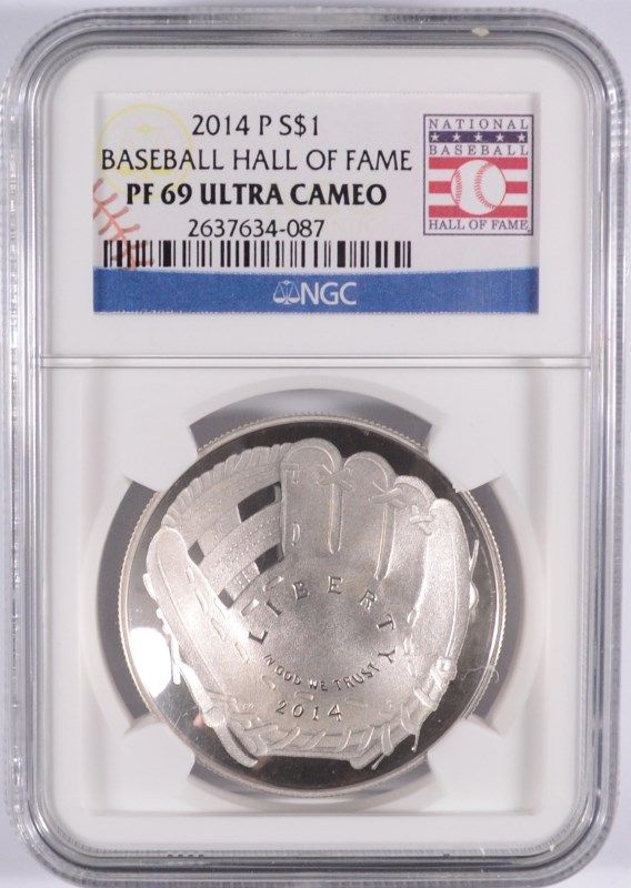 2014 BASEBALL HALL OF FAME SILVER DOLLAR, NGC PROOF-69 ULTRA CAMEO BEAUTIFUL!