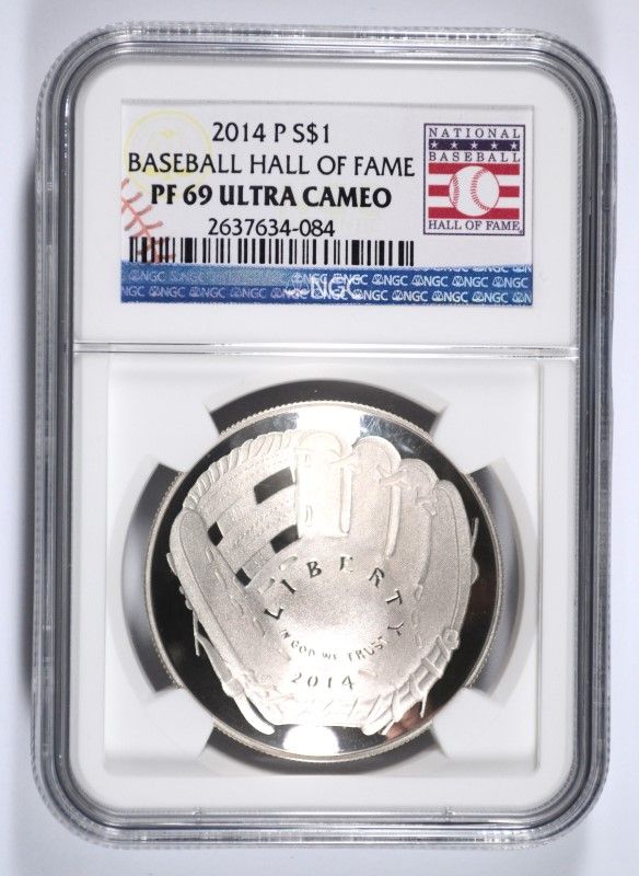 2014 BASEBALL HALL OF FAME SILVER DOLLAR, NGC PROOF-69 ULTRA CAMEO! WOW!!