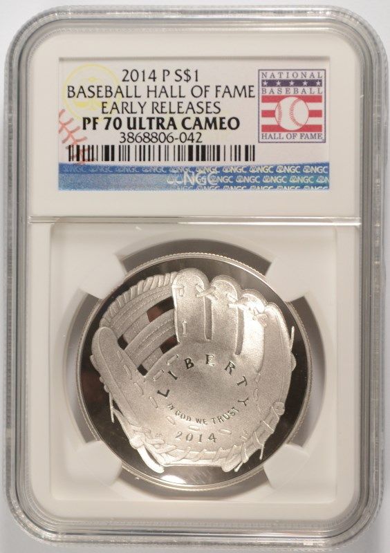 2014 BASEBALL HALL OF FAME SILVER DOLLAR, NGC PROOF-70 EARLY RELEASE!! WOW!!