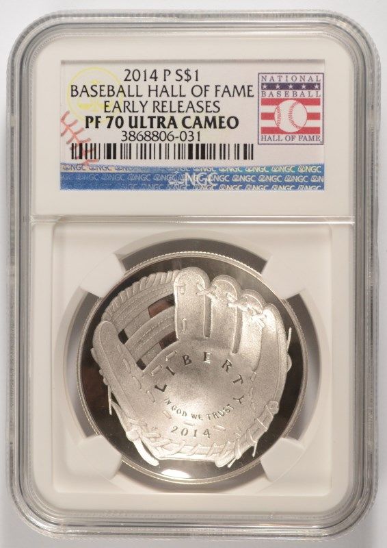 2014 BASEBALL HALL OF FAME SILVER DOLLAR, NGC PROOF-70 EARLY RELEASE!! WOW!!
