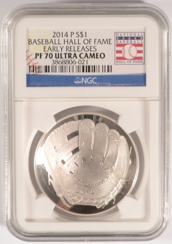 2014 BASEBALL HALL OF FAME SILVER DOLLAR, NGC PROOF-70 EARLY RELEASE!! WOW!!