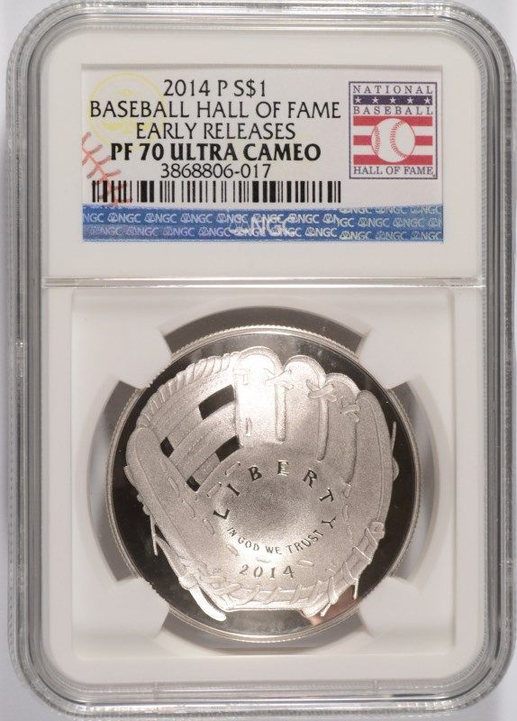 2014 BASEBALL HALL OF FAME SILVER DOLLAR, NGC PROOF-70 EARLY RELEASE!! WOW!!