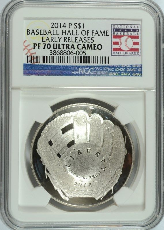 2014 BASEBALL HALL OF FAME SILVER DOLLAR, NGC PROOF-70 EARLY RELEASE!! WOW!!