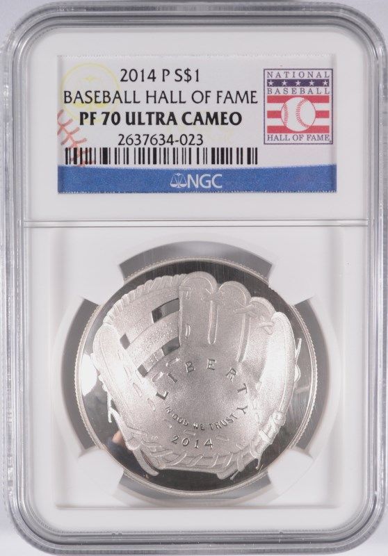 2014 BASEBALL HALL OF FAME SILVER DOLLAR, NGC PROOF-70 ULTRA CAMEO BEAUTIFUL!