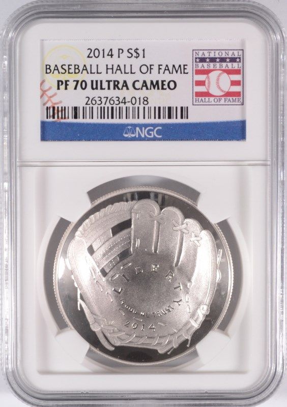 2014 BASEBALL HALL OF FAME SILVER DOLLAR, NGC PROOF-70 ULTRA CAMEO BEAUTIFUL!