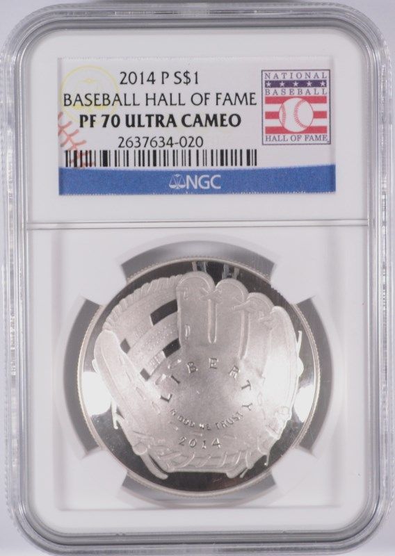 2014 BASEBALL HALL OF FAME SILVER DOLLAR, NGC PROOF-70 ULTRA CAMEO BEAUTIFUL!