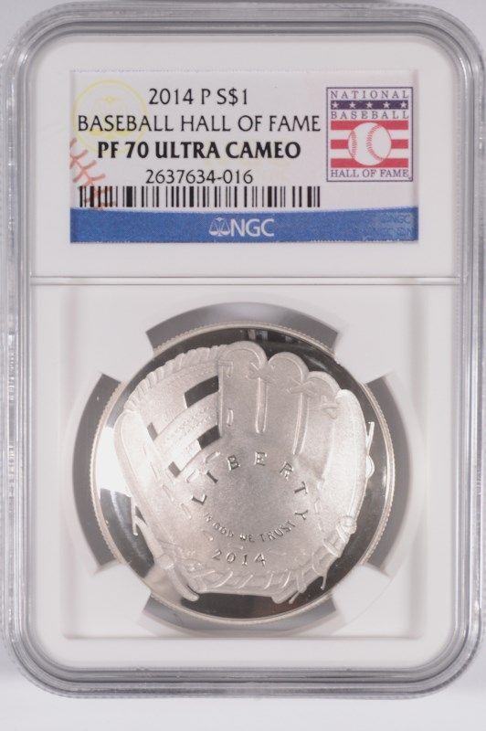 2014 BASEBALL HALL OF FAME SILVER DOLLAR, NGC PROOF-70 ULTRA CAMEO BEAUTIFUL!