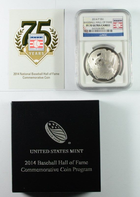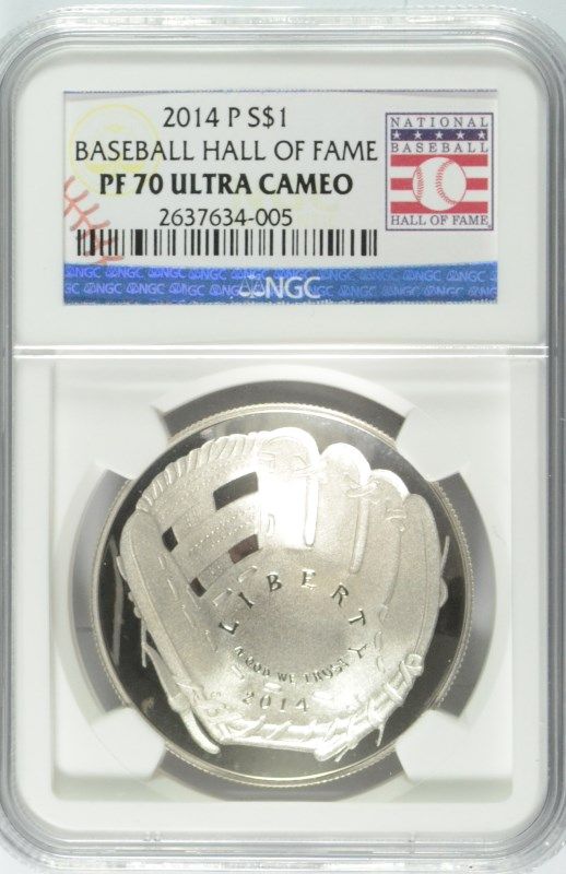 2014 BASEBALL HALL OF FAME SILVER DOLLAR, NGC PROOF-70 ULTRA CAMEO WOW!!