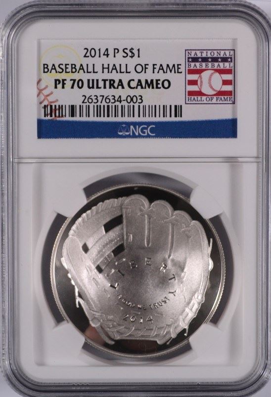 2014 BASEBALL HALL OF FAME SILVER DOLLAR, NGC PROOF-70 ULTRA CAMEO WOW!!