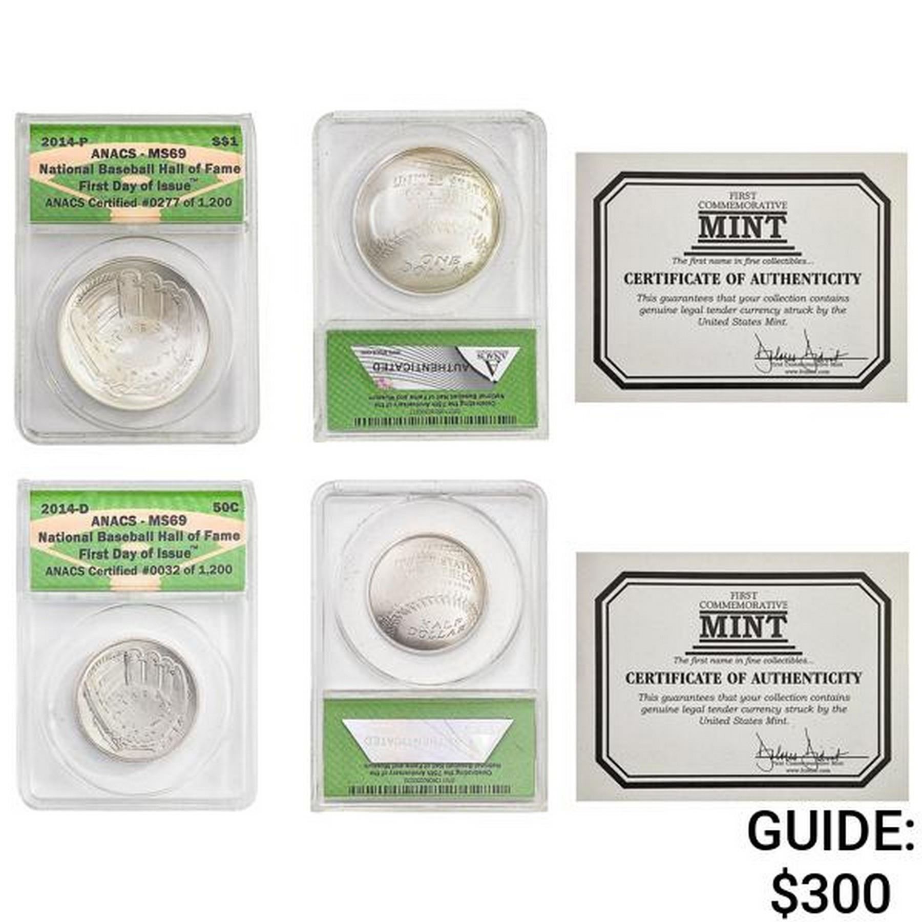2014 Baseball 50c Commem. (2 Coins) ANACS MS69