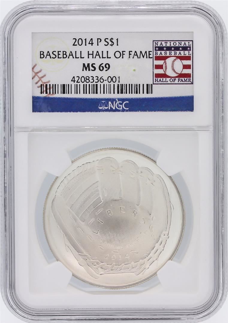One 2014 Baseball HOF NGC Graded MS69 $1 Silver Coin Hall of Fame. NGC Certified.