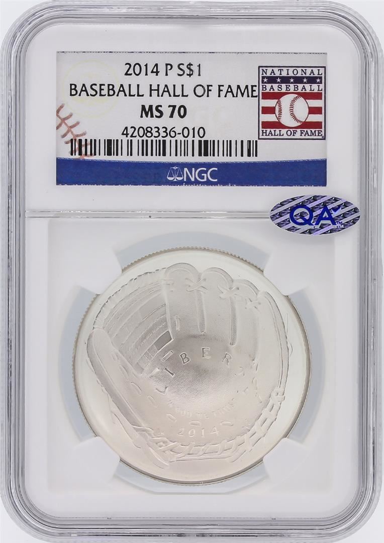 One 2014 Baseball HOF NGC Graded MS70 $1 Silver Coin Hall of Fame. NGC Certified.