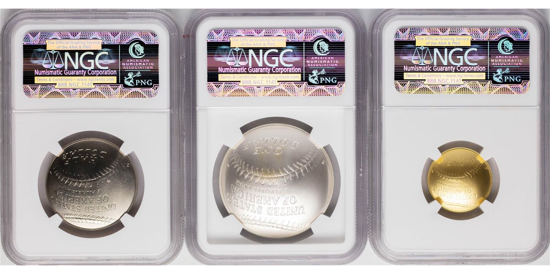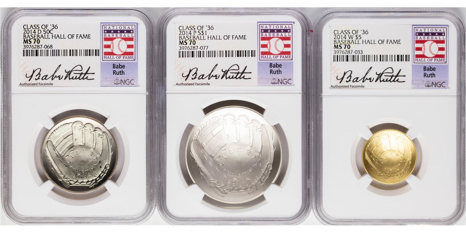 One 2014 Baseball Hall of Fame (3) Coin Set NGC MS70 Babe Ruth. NGC Certified.