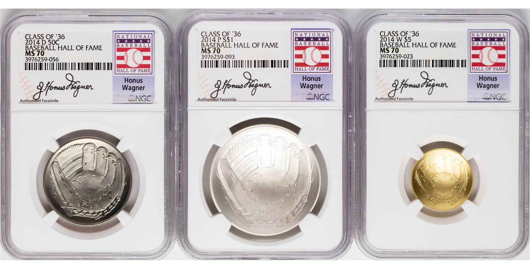 One 2014 Baseball Hall of Fame (3) Coin Set NGC MS70 Honus Wagner. NGC Certified.