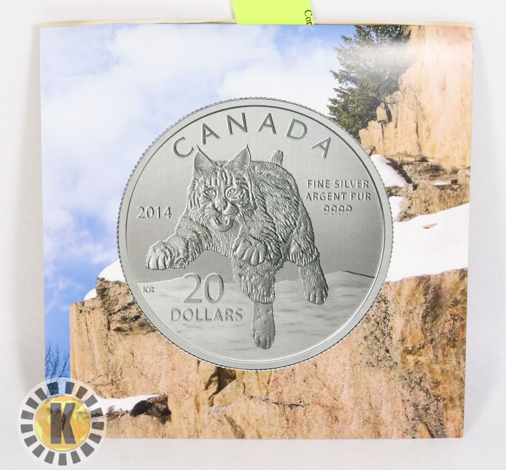 2014 CANADIAN $20 FINE SILVER BOBCAT COIN