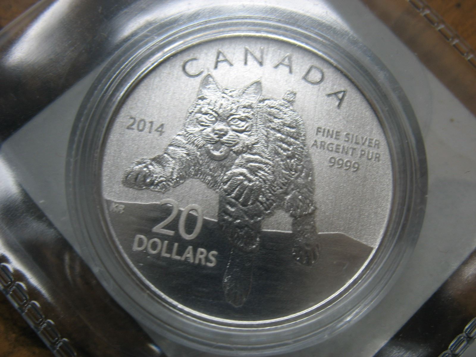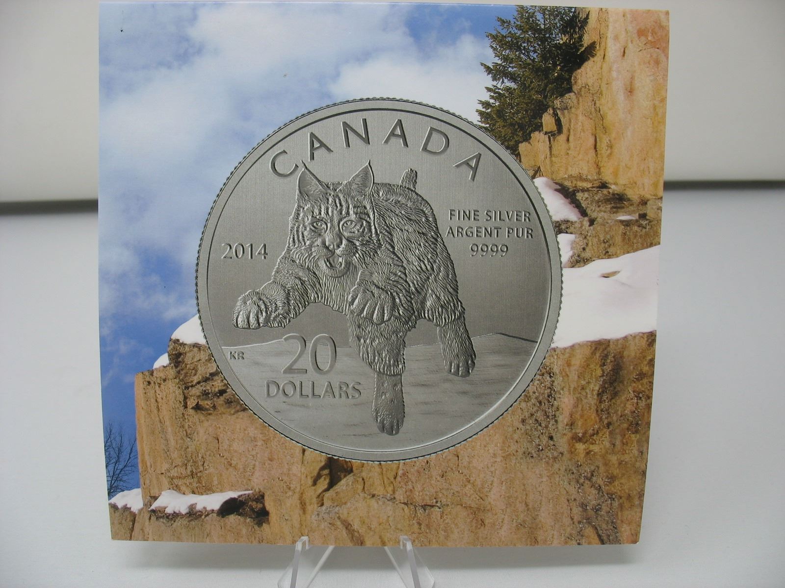 2014 CANADIAN .9999 SILVER $20 MINT COIN - BOBCAT with Folder