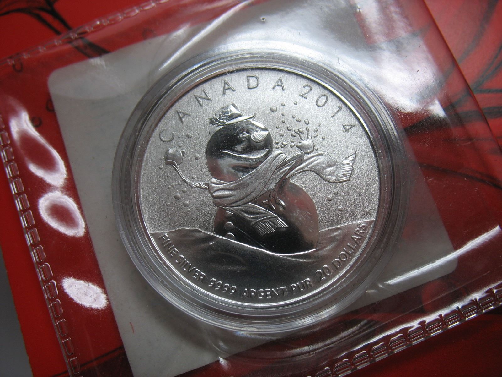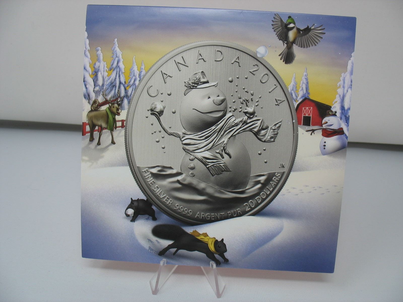 2014 CANADIAN .9999 SILVER $20 MINT COIN - SNOWMAN with Folder