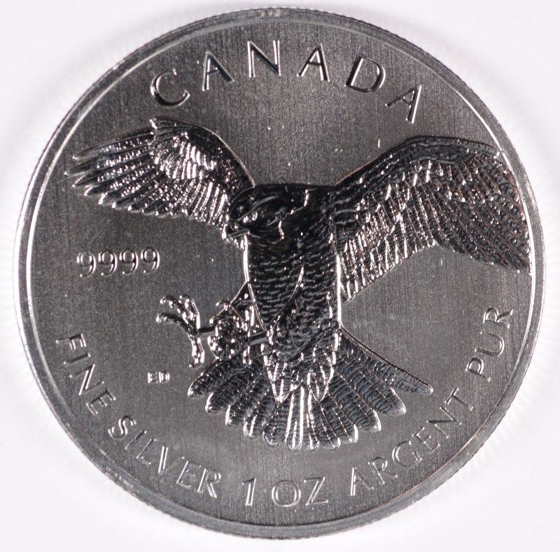2014 CANADIAN PEREGRINE FALCON ONE OUNCE .9999 SILVER COIN, ( FIRST IN SERIES )