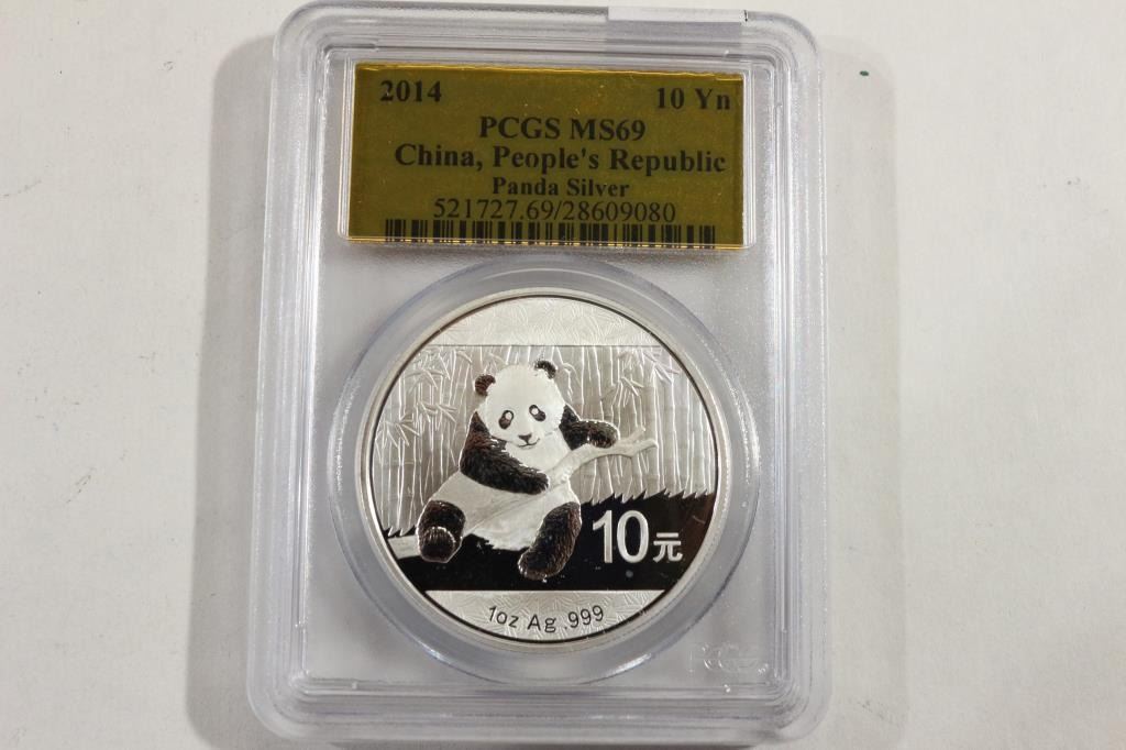 2014 CHINA 10 YUAN SILVER PANDA PCGS MS69
