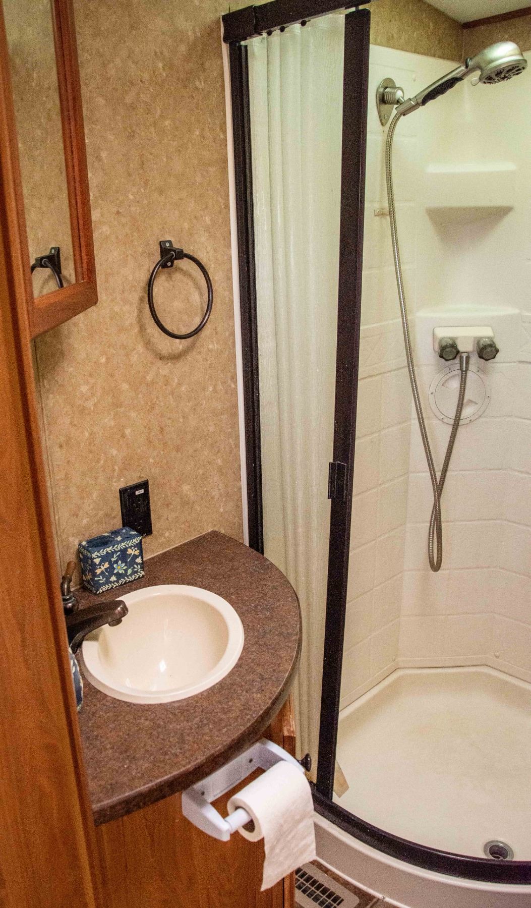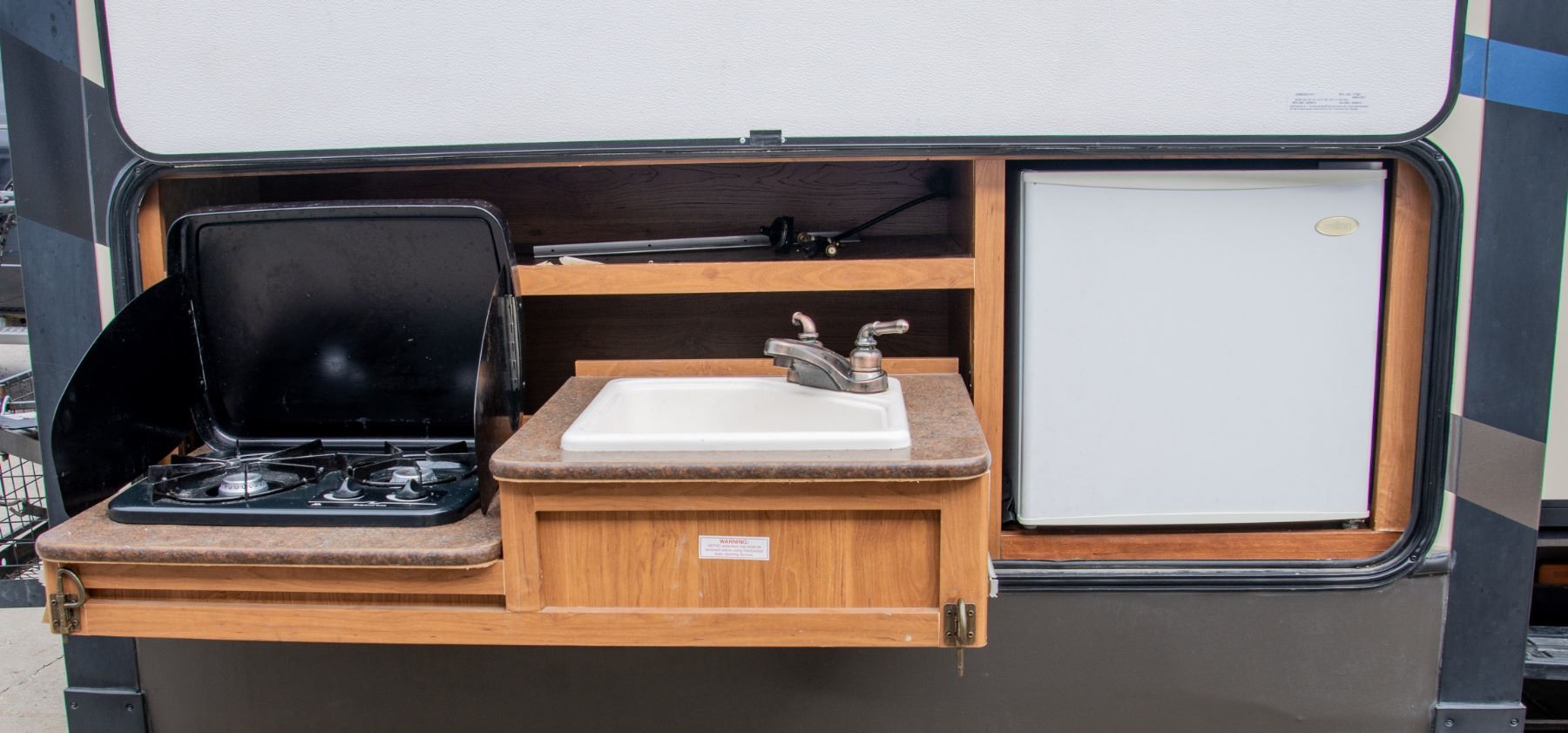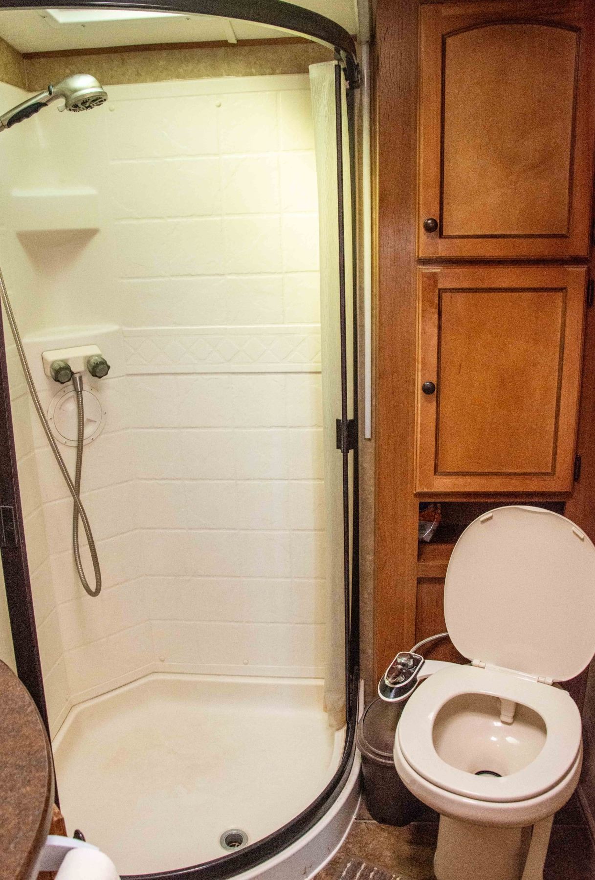 1 FRESHWATER HOLDING TANK, TOTAL FRESHWATER TANK CAPACITY 40.0 GAL, 2 GRAY WATER HOLDING TANKS, TOTAL GRAY WATER TANK CAPACITY 80.0 GAL. 2 BLACK WATER HOLDING TANKS, TOTAL BLACK WATER TANK CAPACITY 80.0 GAL. 2 PROPANE TANKS, TOTAL PROPANE TANK CAPACITY 9.4 GAL. TOTAL PROPANE TANK CAPACITY 40 LBS. BODY MATERIAL ALUMINUM SIDEWALL CONSTRUCTION FIBERGLASS, 2 ENTRANCE/EXIT DOORS, 3 SLIDEOUTS (POWER RETRACTABLE)