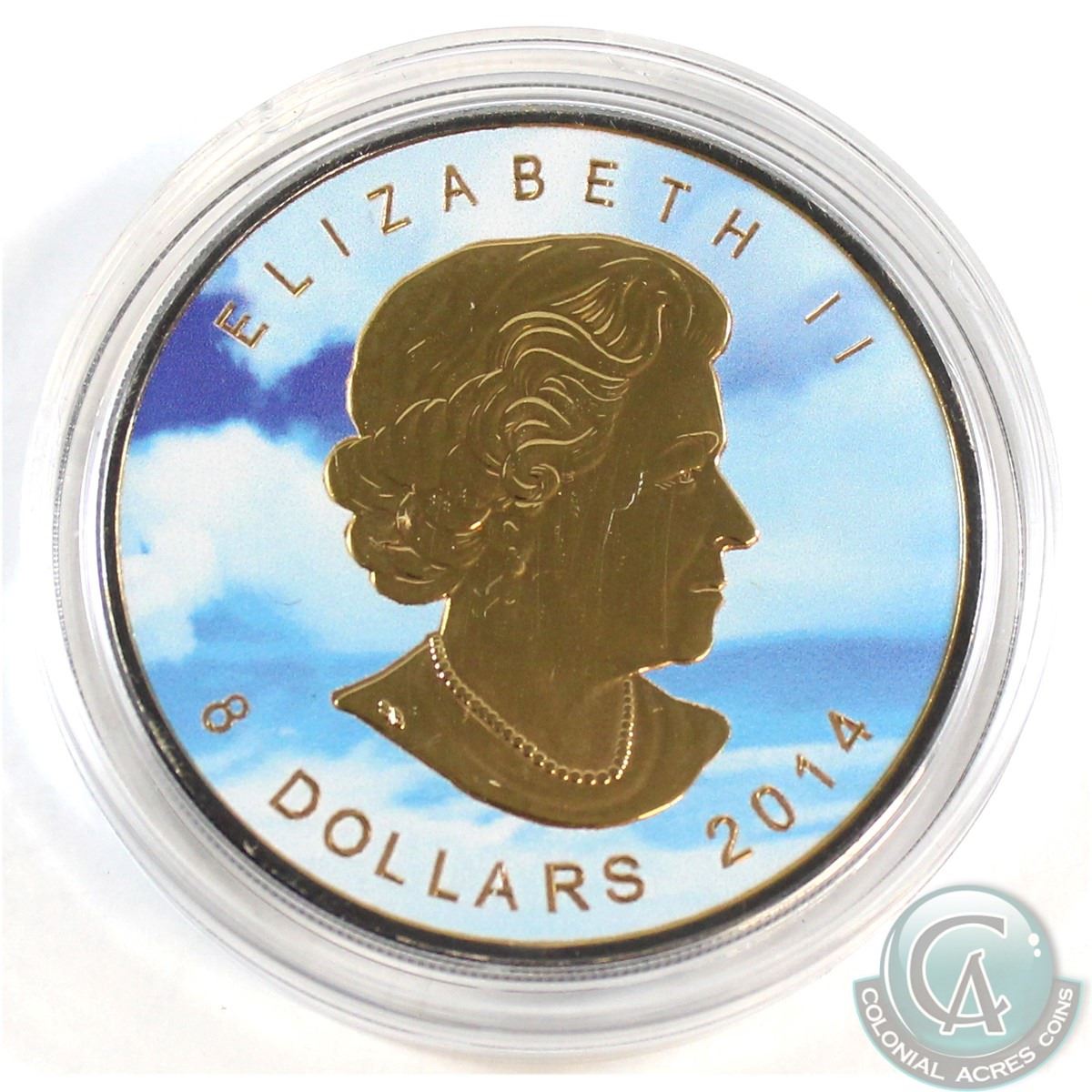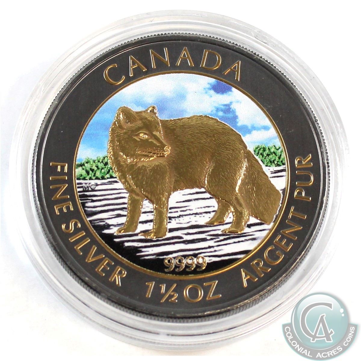 2014 Canada 1.5oz .9999 Fine Silver Coloured, Gilded and Ruthenium Plated Arctic Fox Coin (Light scratches on Queen's face). Tax Exempt
