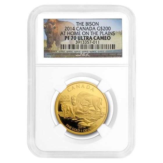 One piece 2014 Canada 1 oz Proof Gold $200 Bison PF-70 NGC