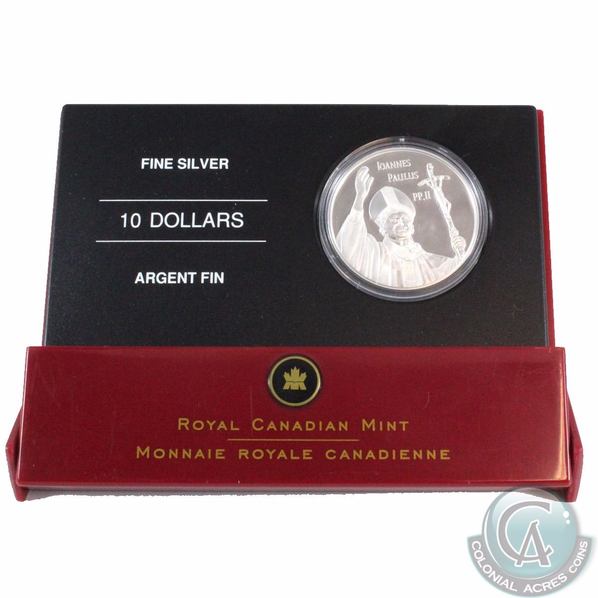 2014 Canada $10 Pope John Paul II Fine Silver Coin (Tax Exempt). Coin comes encapsulated in a red display case with COA.