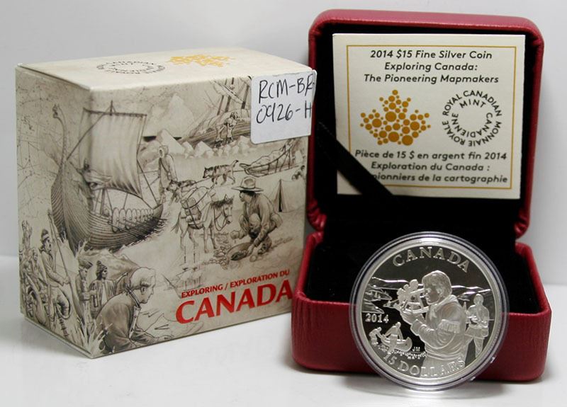 2014 Canadian $15 Fine Silver Coin - Exploring Canada Series - The Pioneering Mapmakers