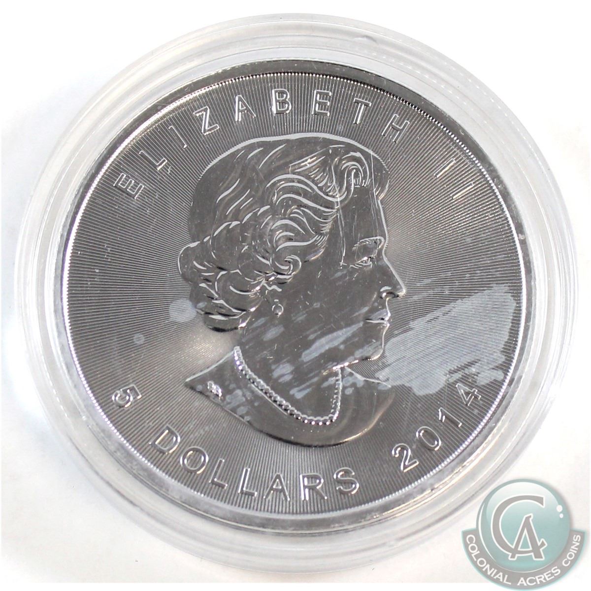 2014 Canada 1oz .9999 Fine Silver Coloured Moose Maple Leaf (Coin obverse toned & capsule scratched). Tax Exempt