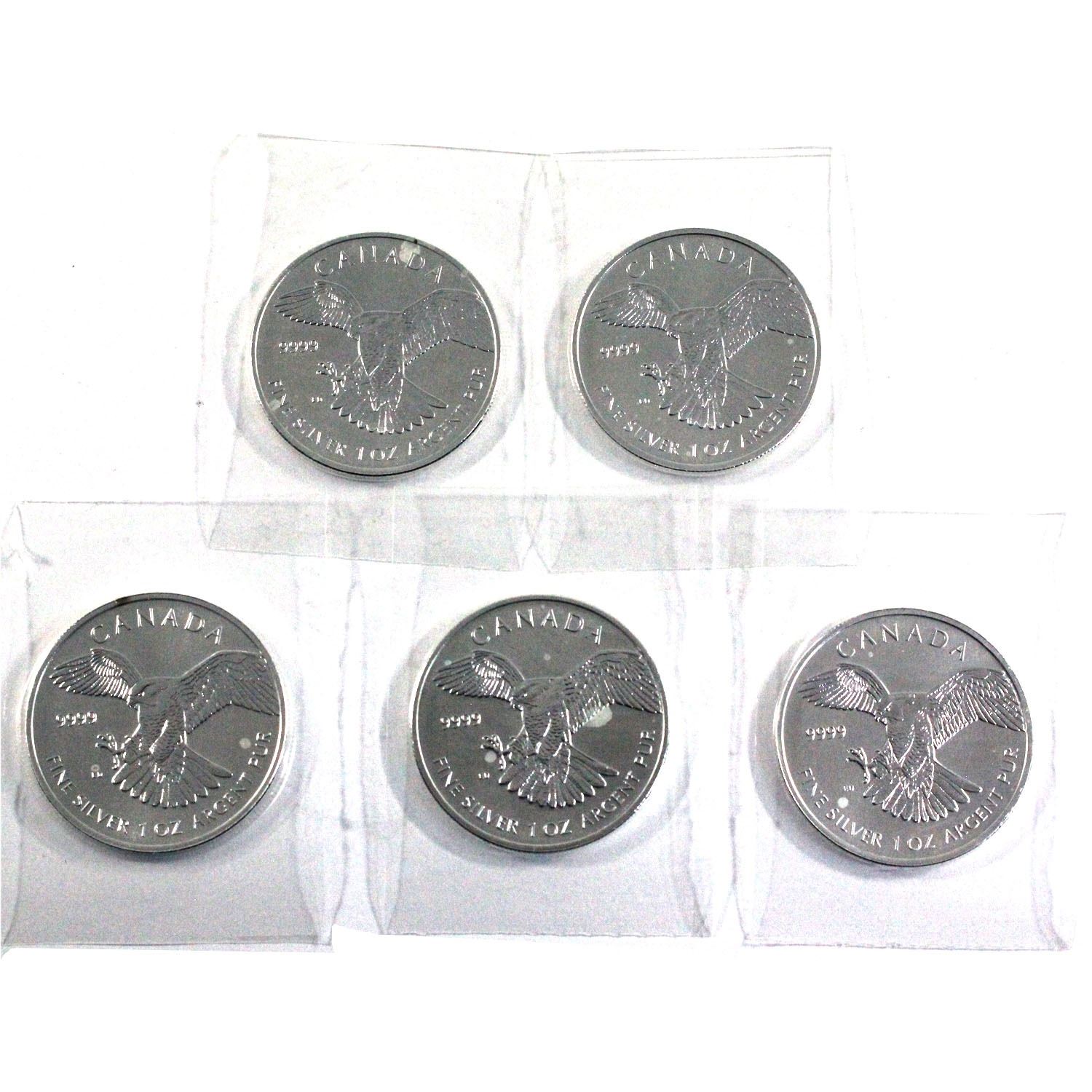 2014 Canada 1oz .9999 Fine Silver Peregrine Falcon in Sealed Mint Plastic (Some toning spots on coins). 5pcs (TAX Exempt)