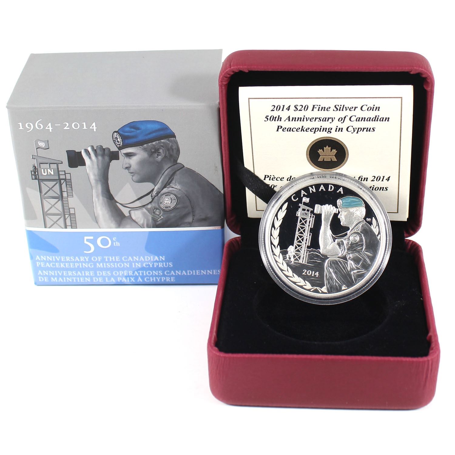 2014 Canada $20 50th Anniversary of Peacekeeping in Cyprus Fine Silver Coin (TAX Exempt).