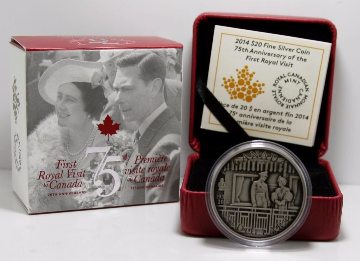 2014 Canada $20 Fine Silver Coin - Antique Finish - 75th Anniversary of the First Royal Visit
