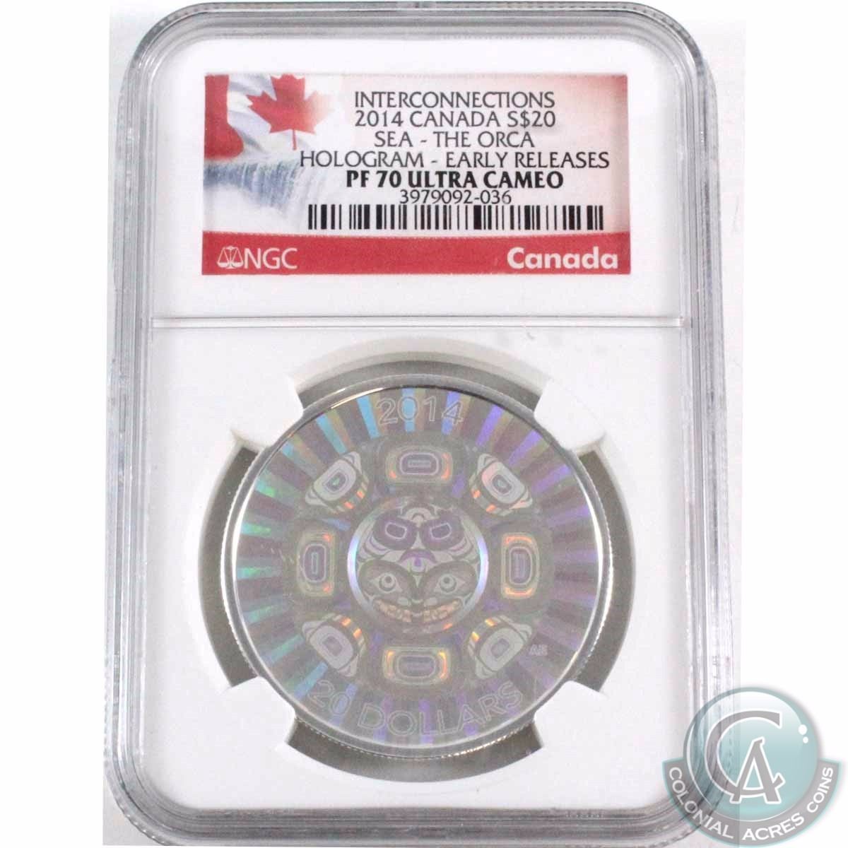 2014 Canada $20 Fine Silver Coin - Interconnections: Sea - The Orca NGC Certified PF-70; Ultra Cameo (TAX Exempt)