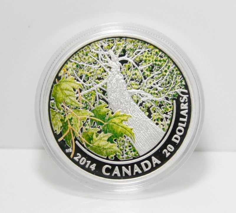 2014 Canadian $20 Fine Silver Coin - Maple Canopy, Spring Splendor - Colourized Coin With Box & COA