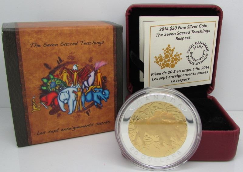 2014 Canadian Fine Silver $20 Coin By RCM - Seven Sacred Teachings - RESPECT - Only 7000 Minted - 1 Oz