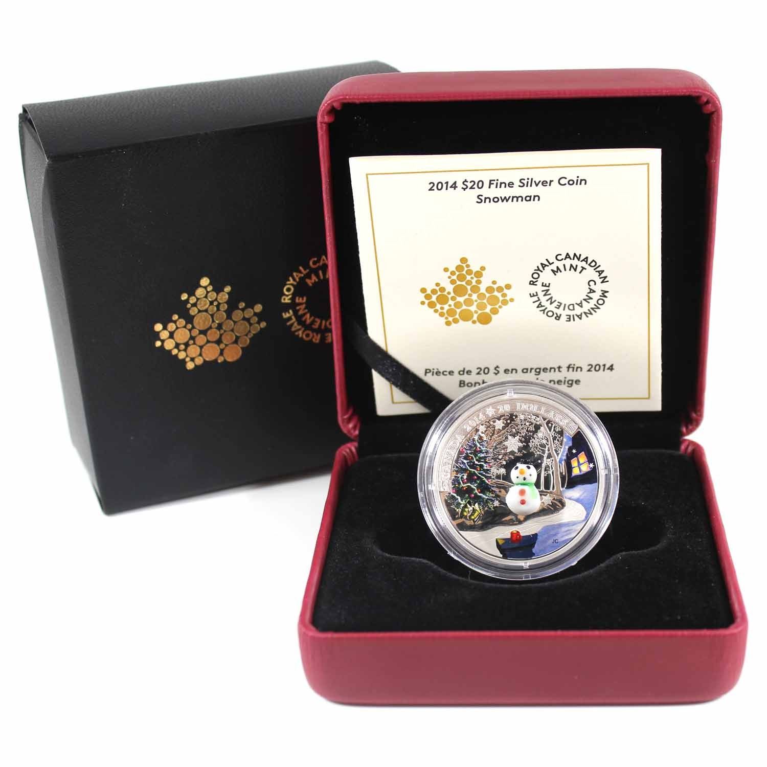 2014 Canada $20 Venetian Glass Snowman Fine Silver Coin (outer sleeve is bent). TAX Exempt