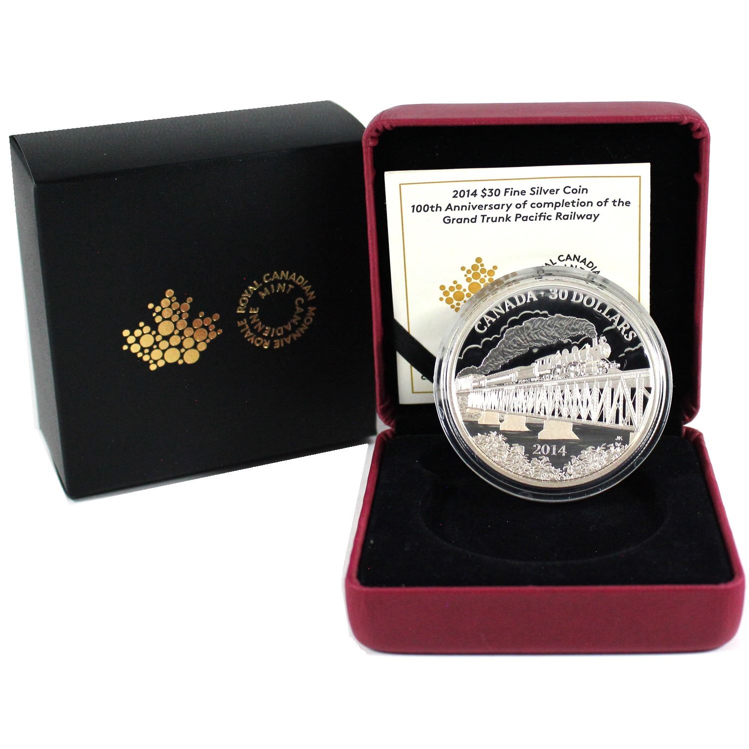 2014 Canada $30 100th Anniversary of the Completion of the Grand Trunk Pacific Railway (TAX Exempt). Coin is toned .