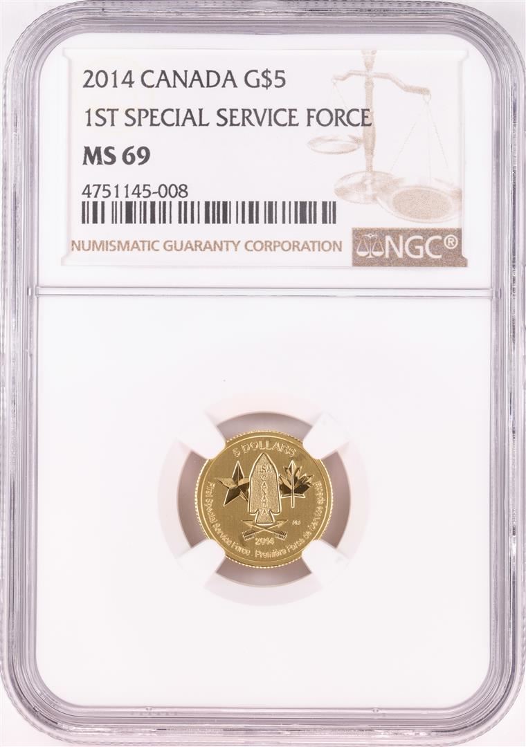 2014 Canada $5 1st Special Service Force Commemorative Gold Coin NGC MS69