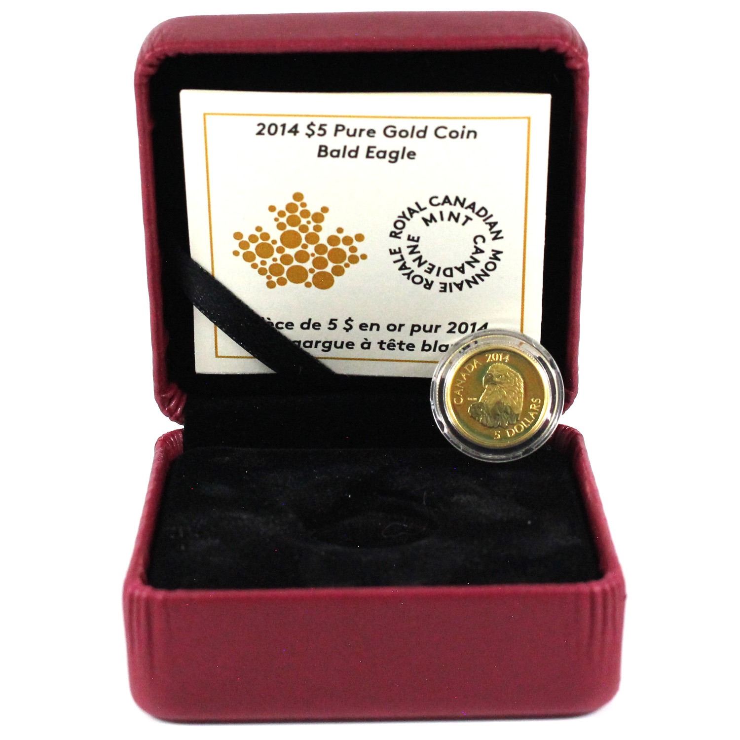 2014 Canada $5 Bald Eagle Fine Gold Coin Encapsulated in Red RCM Display Box with COA (Scratch on back of capsule). (TAX Exempt)