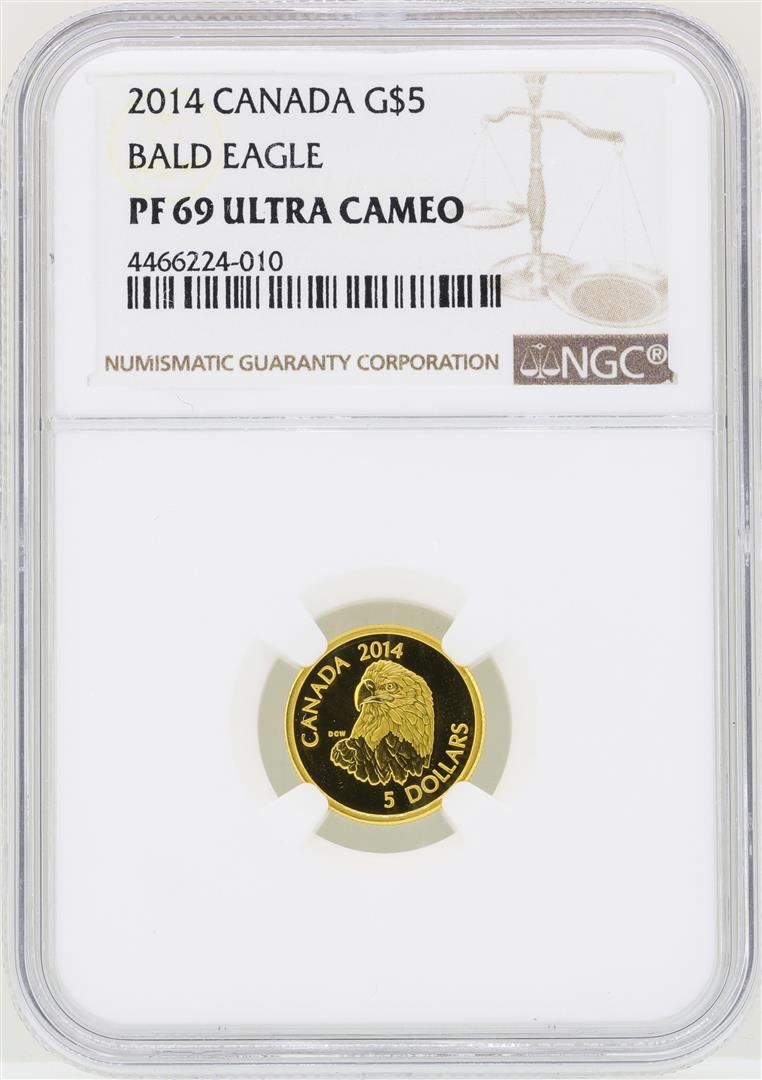 One 2014 Canada $5 Bald Eagle Gold Coin NGC PF69 Ultra Cameo. NGC Certified.