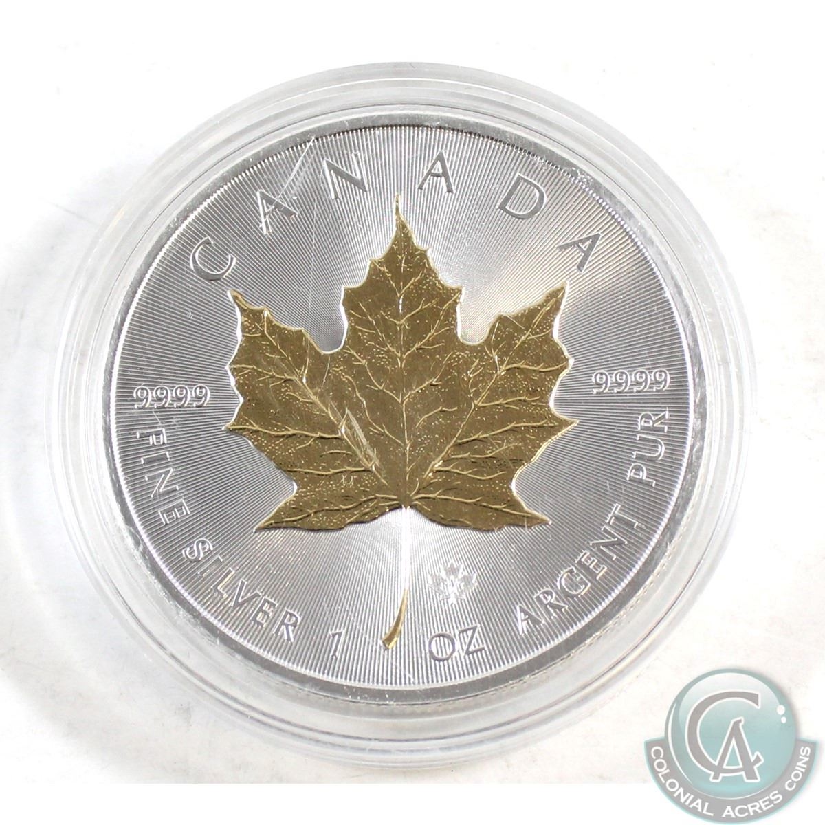 2014 Canada $5 Gold Plated .9999 Fine Silver Maple Leaf in capsule (coin lightly toned) TAX Exempt
