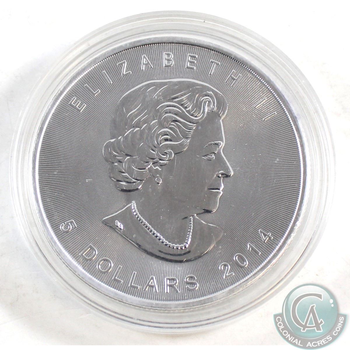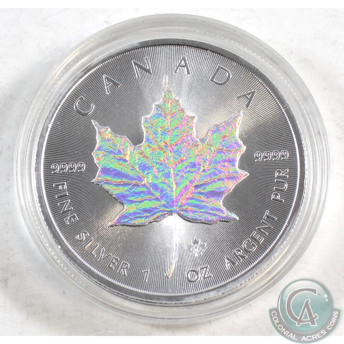 2014 Canada $5 Holographic .9999 Fine Silver Maple Leaf in capsule (coin lightly toned) TAX Exempt