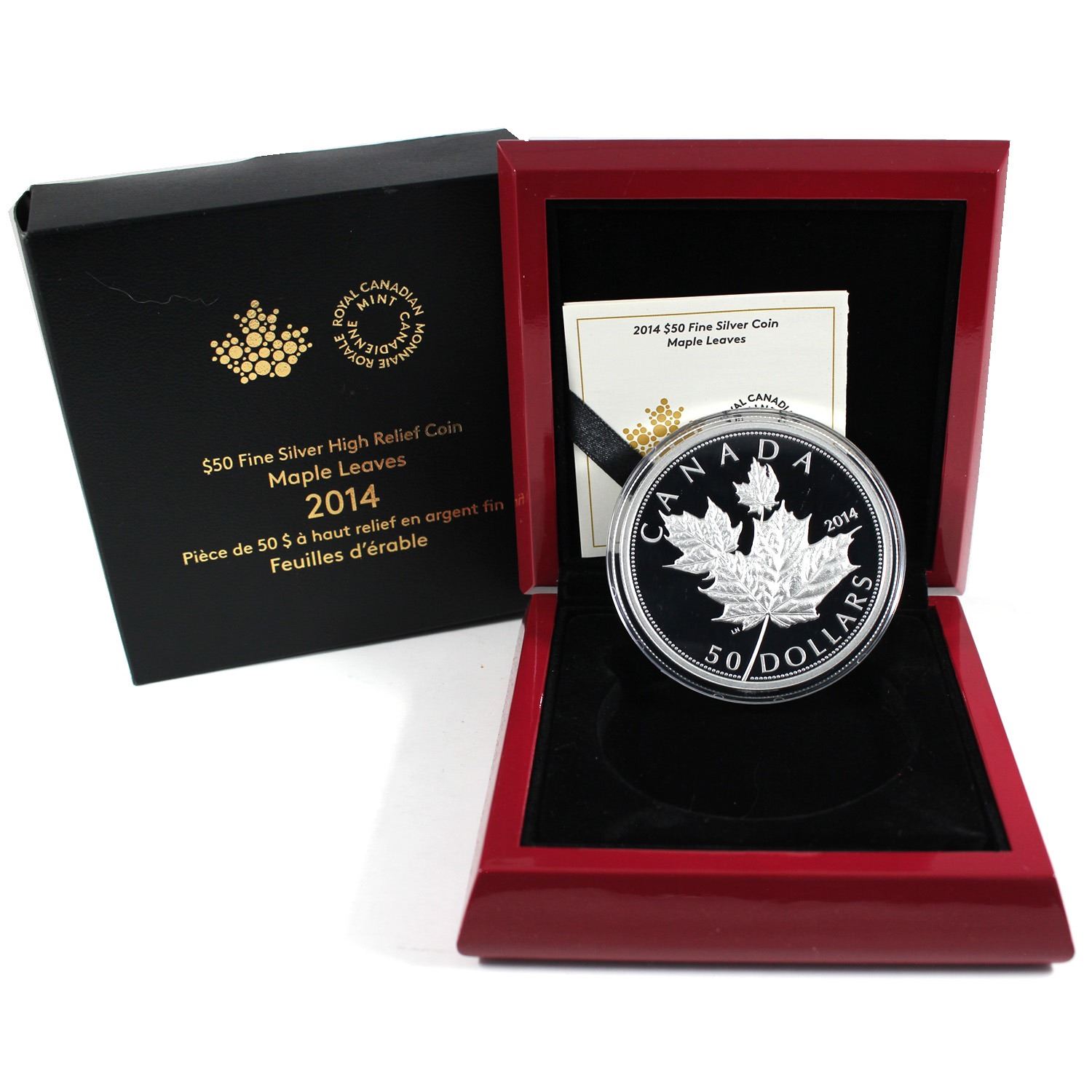 2014 Canada $50 Maple Leaves 5oz Fine Silver Coin (Sleeve lightly bent). TAX Exempt