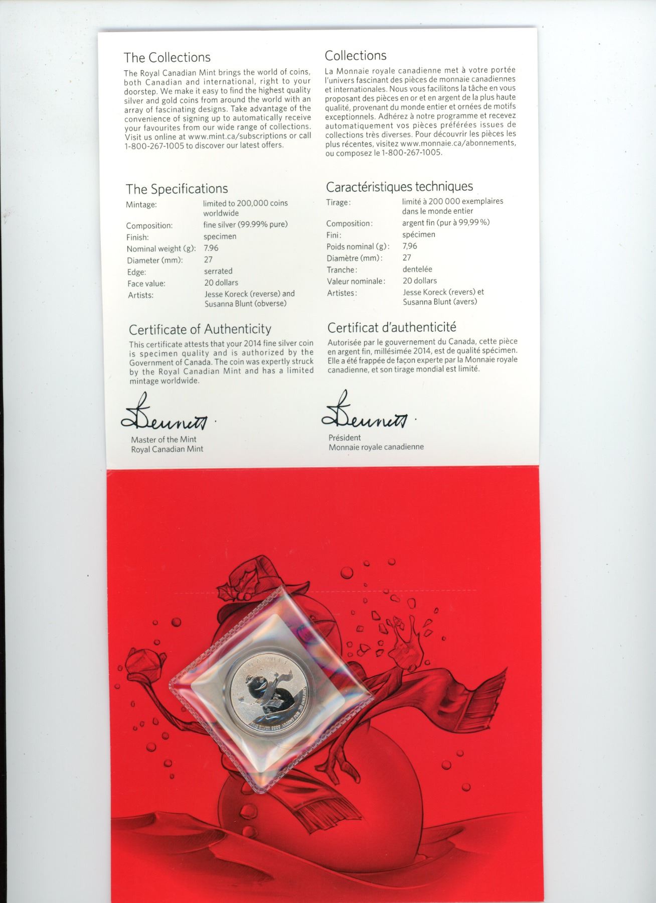 2014 Canada Fine Silver '$20 for $20' Coin: Snowman