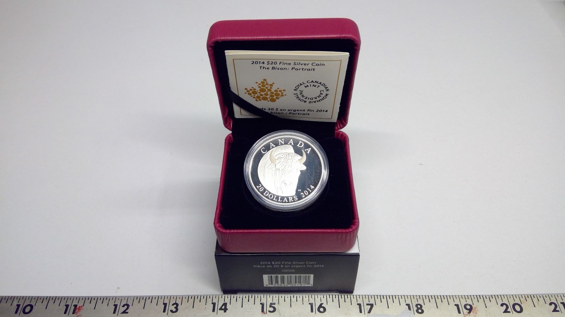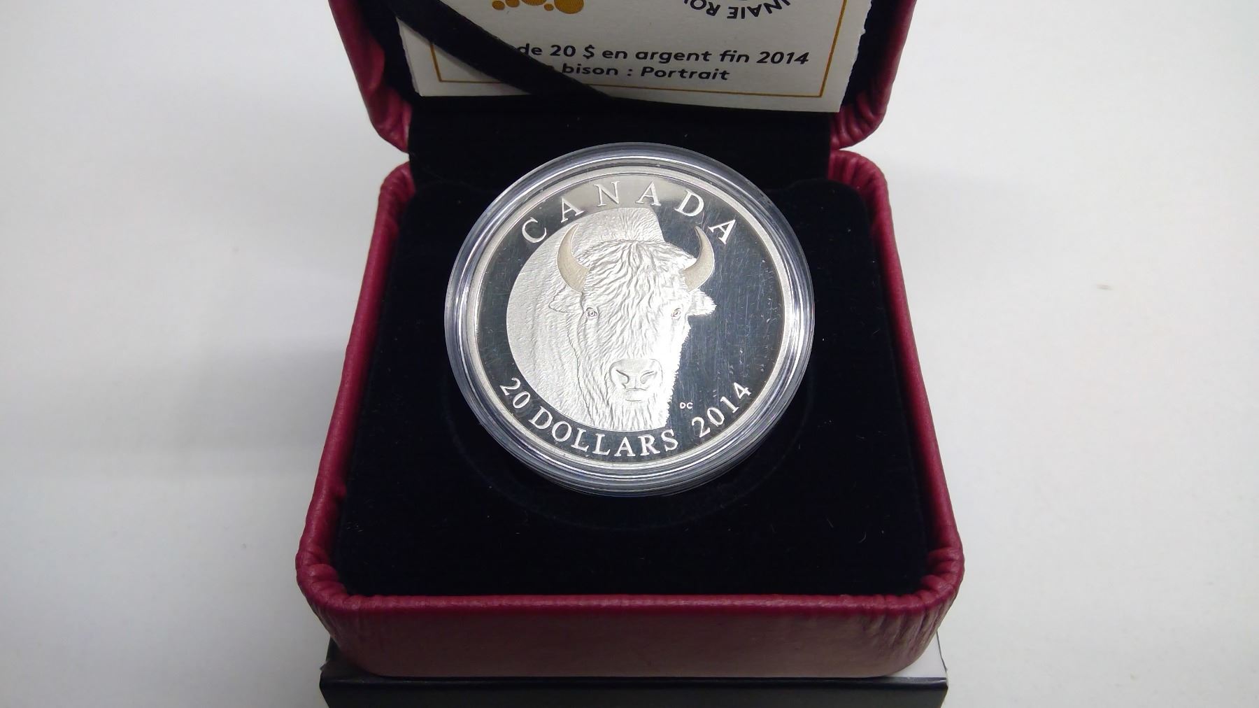 2014 Canada Fine Silver Proof $20 coin, The Bison: Portrait, COA
