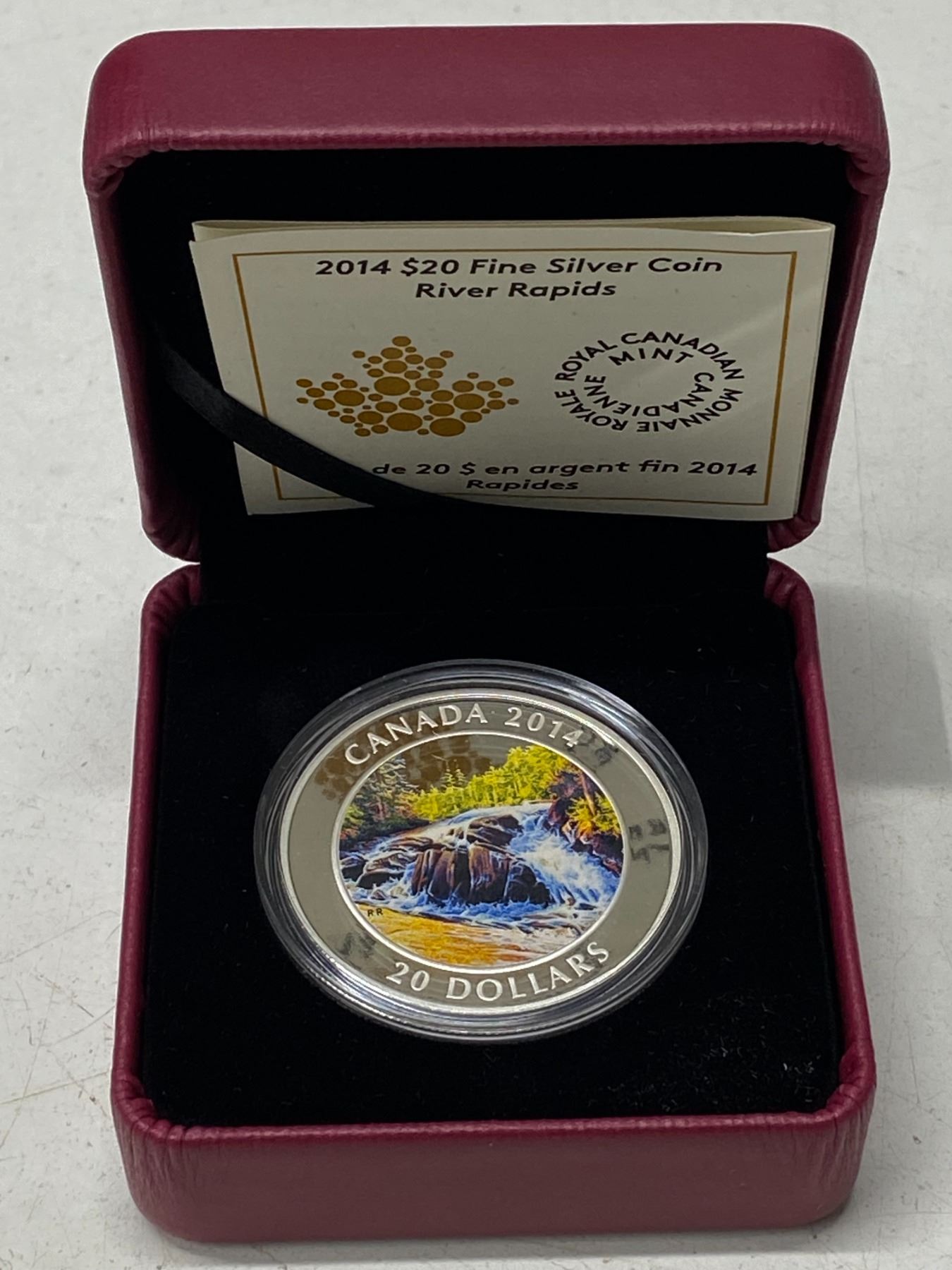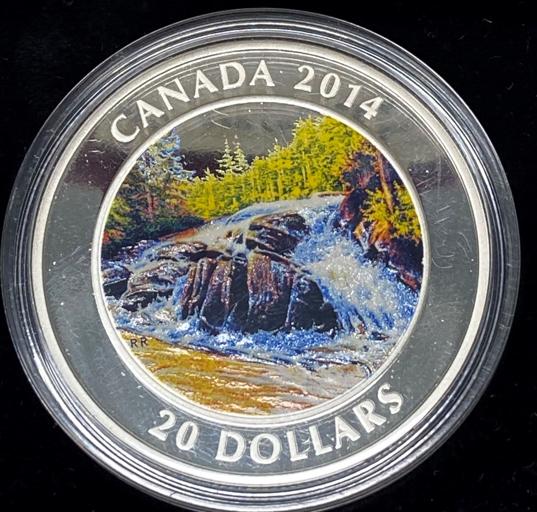 2014 Canada Fine Silver Proof colored $20 Coin, River Rapids, COA