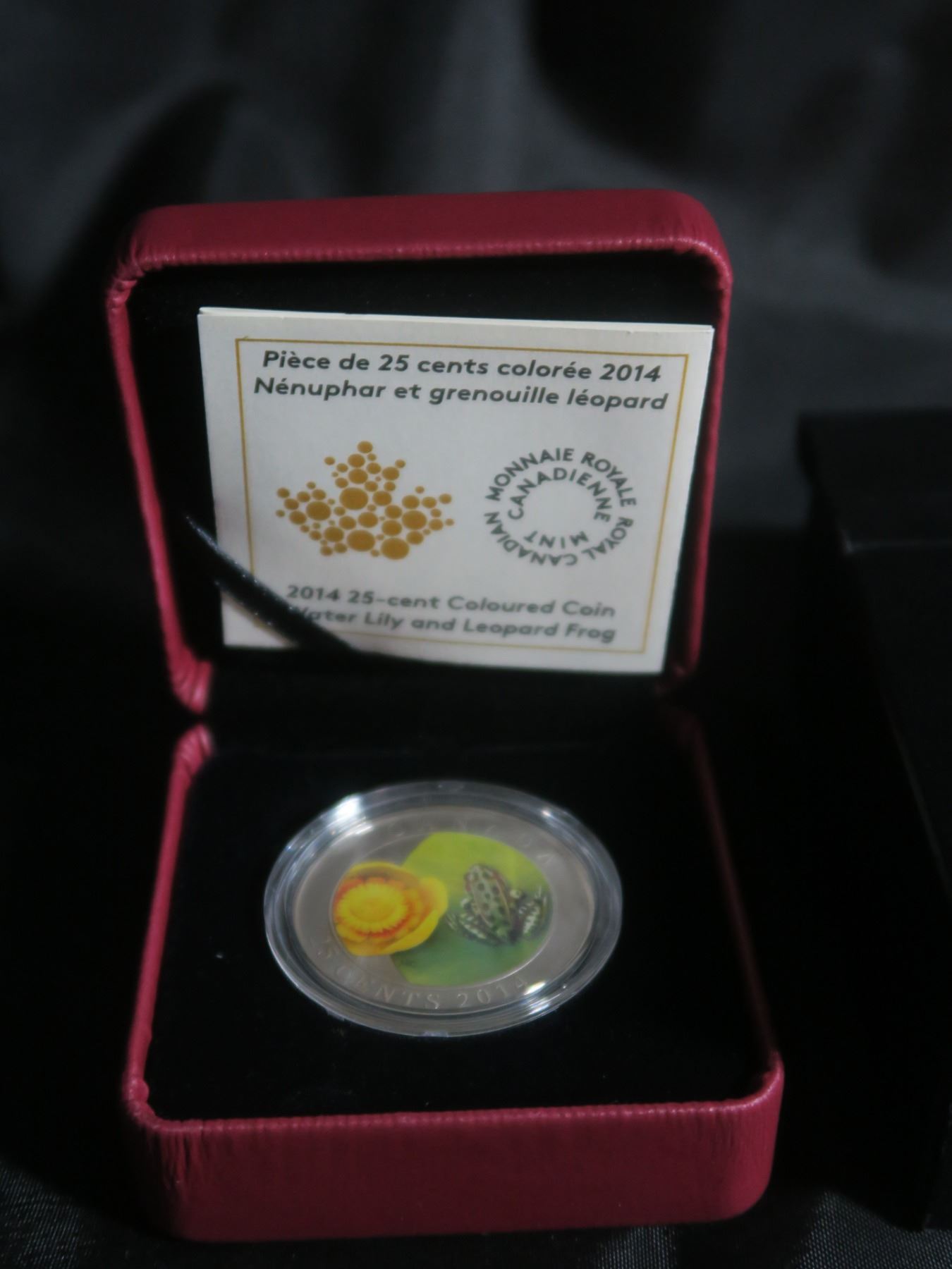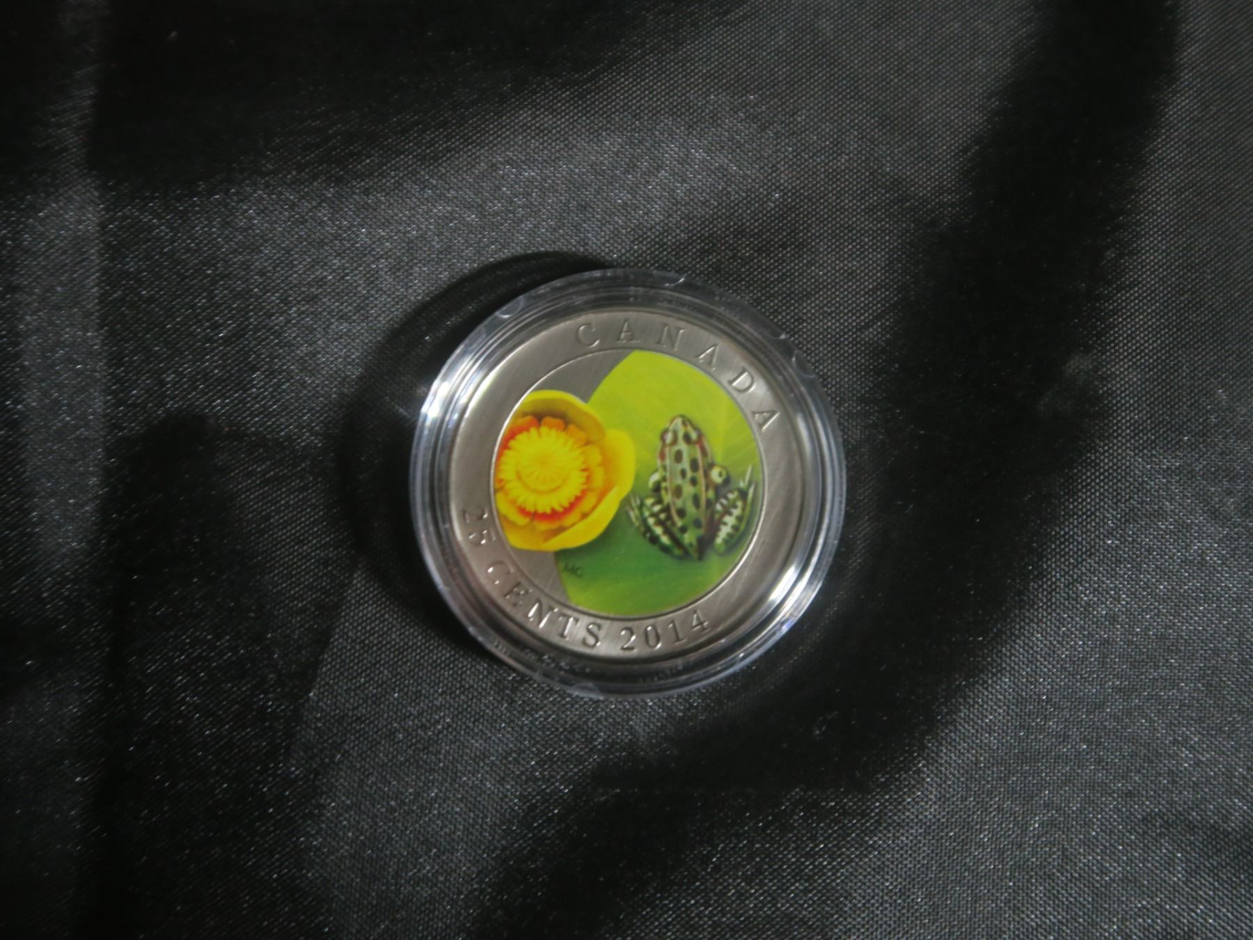 2014 Canadian 25 Cent Coin Colored Water Lily and Leopard Frog in case